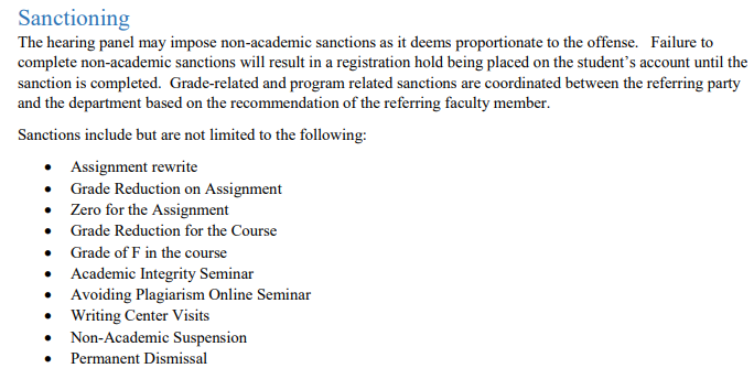 对违反学校规定的学生会根据情节严重处以作业重写到永久开除的不同等级的处分。见下图: