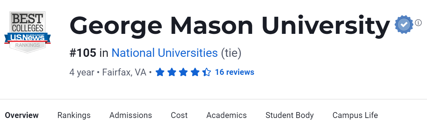 在2024年USNews美国大学排名中,乔治梅森大学排名第105。