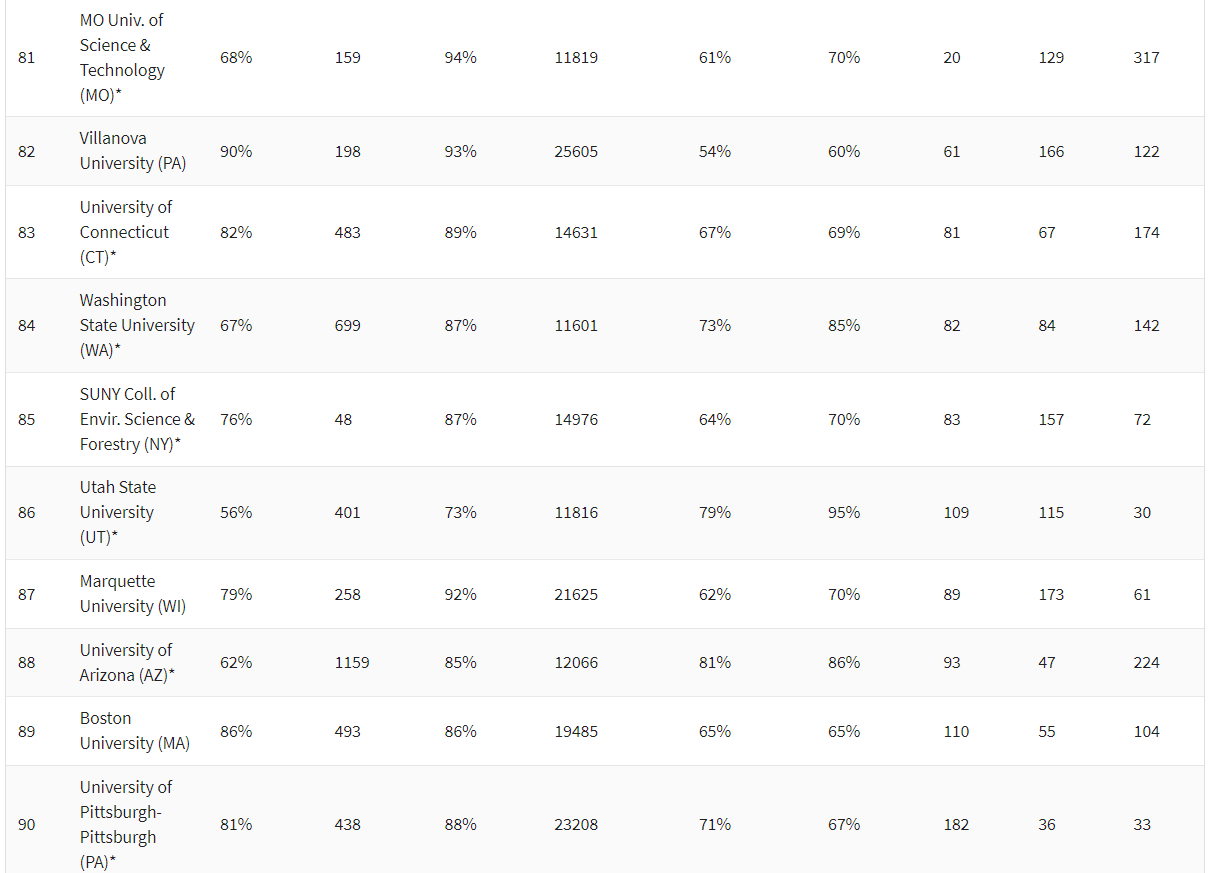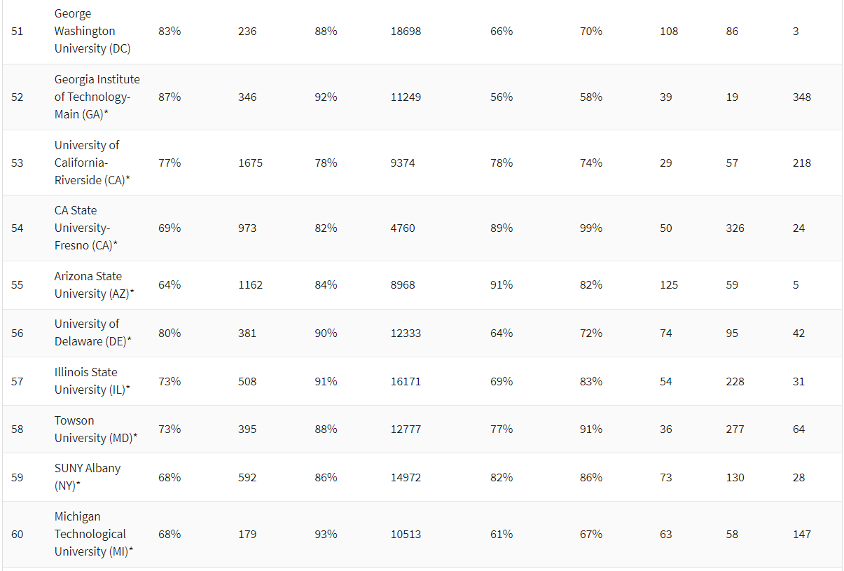 而一些在U.S.News Top50中查无此校的公立大学,往往在《华盛顿月刊》中成了香饽饽。
