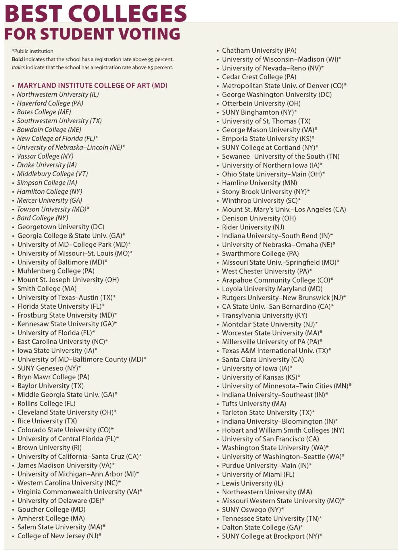 当然,除了上述比较权威的榜单,《华盛顿月刊》还根据学生的投票制定了第5版排名,让学生自己选出最优秀的大学。