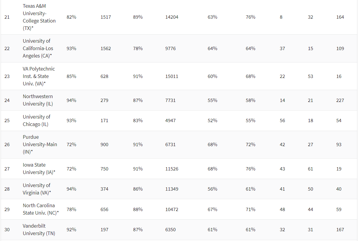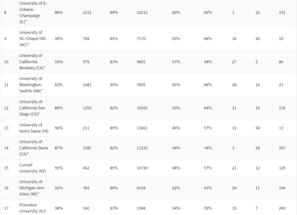 今年,共计有204所学校入榜,比去年多出47所学校,私立大学整体表现要优于公立大学,但还有美国不少顶尖学校未能上榜。