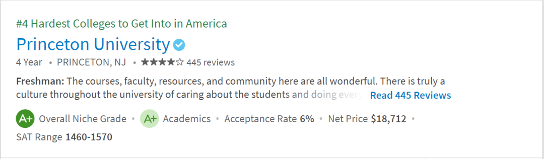 素有“美国高校排名版的大众点评”之称的Niche官网更新了“2022 Hardest Colleges to Get Into in America(2022美国最难申请大学)”排名。包含众多大家耳熟能详的综合性大学和文理学院。非常有助于大家恢复理智,谨慎选择目标院校。