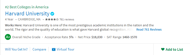 因此,Niche最得人心的地方就是拥有近500,000条来自真实学生的海量评论,从宿舍到教授,为学生提供最真实的参考。