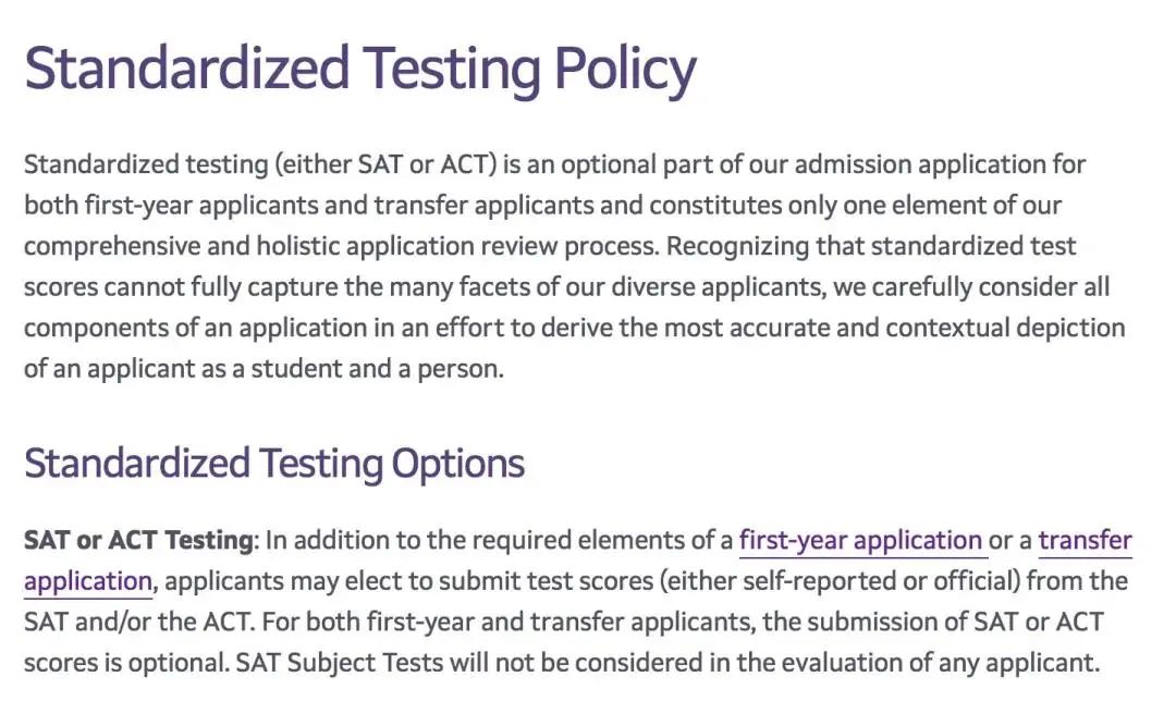 2023-2024:实行Test-Blind政策,意味着SAT/ACT分数在录取决定中完全不被考虑;