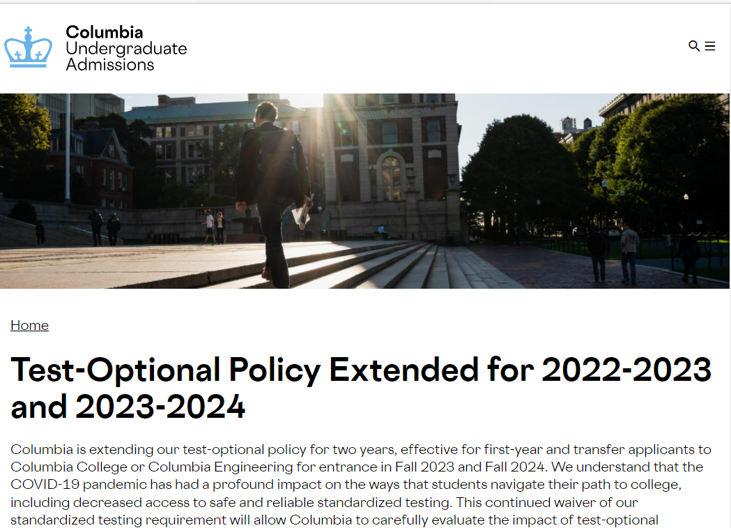 哥大未来两个申请季(2022-2023 和 2023-2024)继续标化可选,不管疫情是否结束,这是吃上标化可选的甜头了。