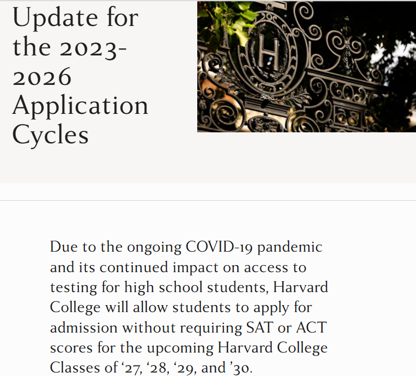 哈佛大学更厉害,未来4年都不需要提交标化成绩,估计下一步就会像加州大学那样宣布永久取消了。