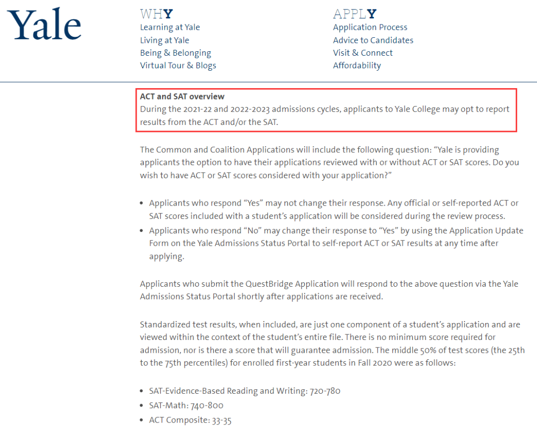 需要注意的是,耶鲁还是明确鼓励学生提交标化成绩的。