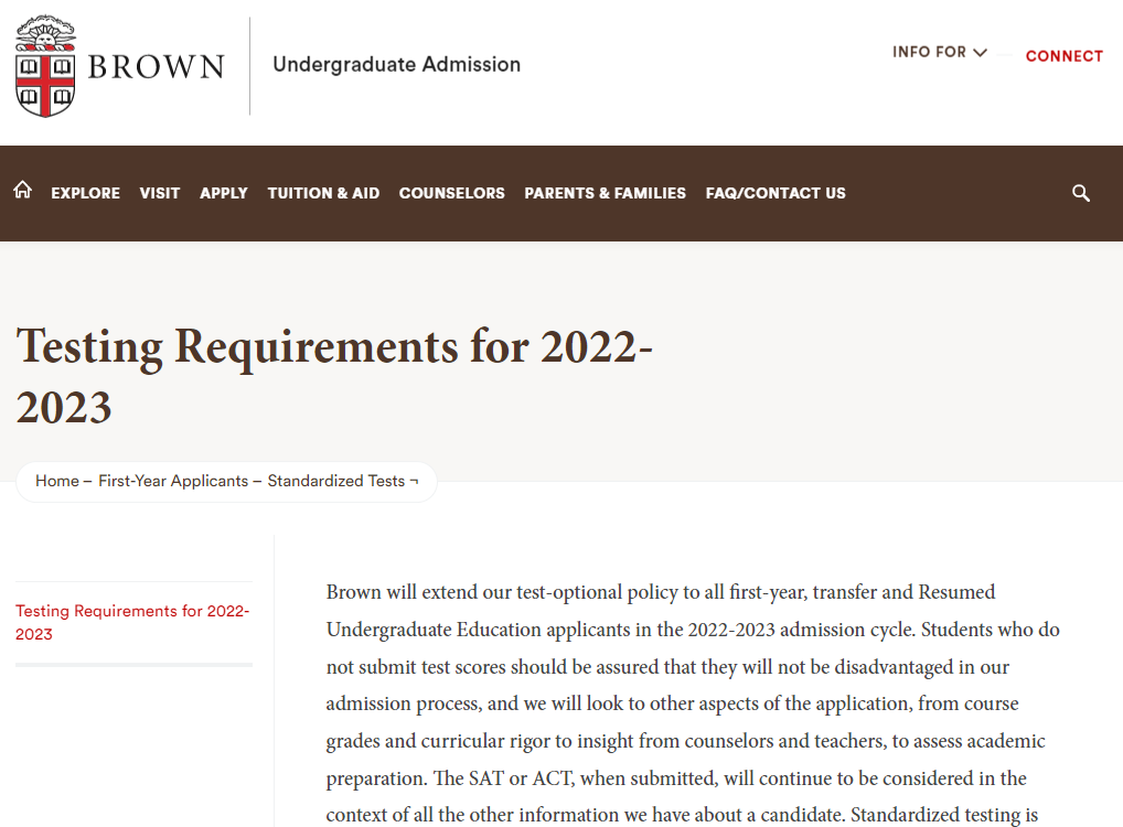 布朗大学新申请季,延续标化成绩可选政策。