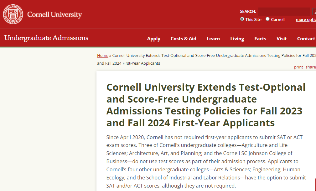 康奈尔大学未来两年也延续标化可选政策,但要注意细节: