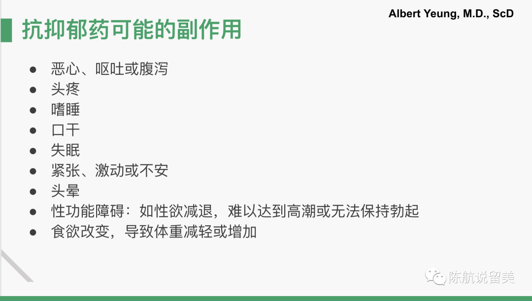 抑郁症定义和原因、情绪障碍患病率、抑郁发病年龄、抑郁筛查工具、抑郁治疗、抗抑郁药的作用及副作用等。