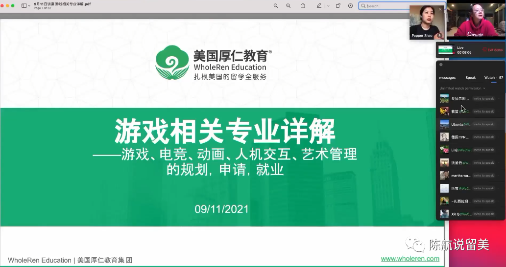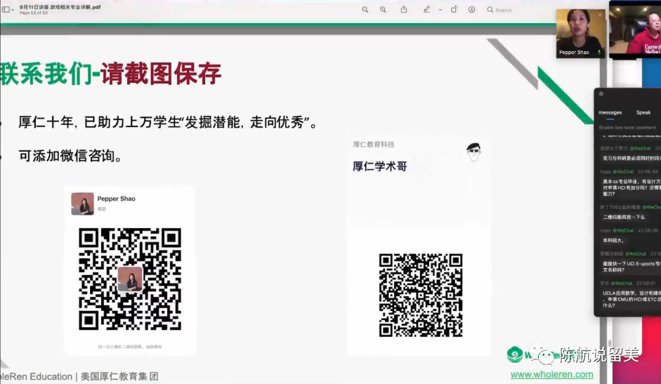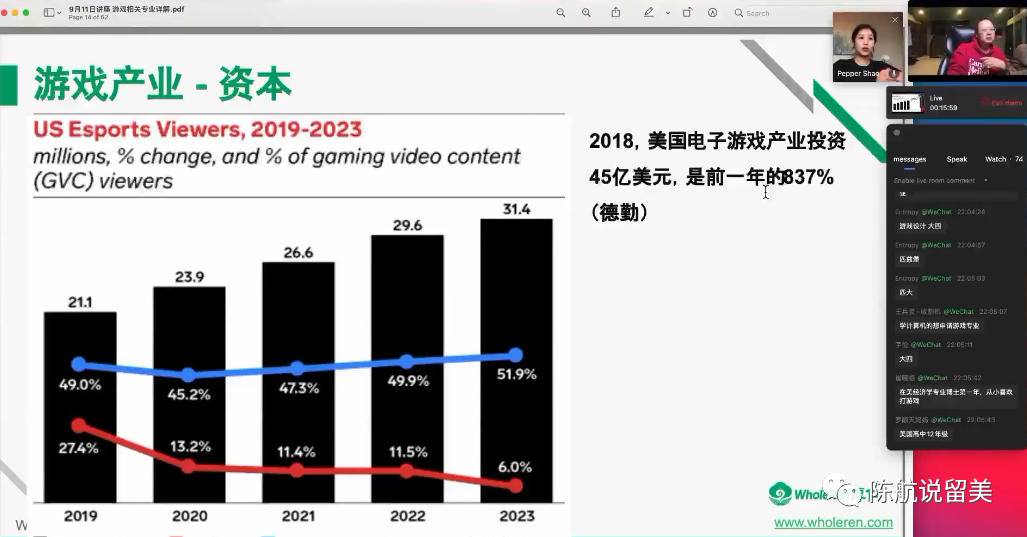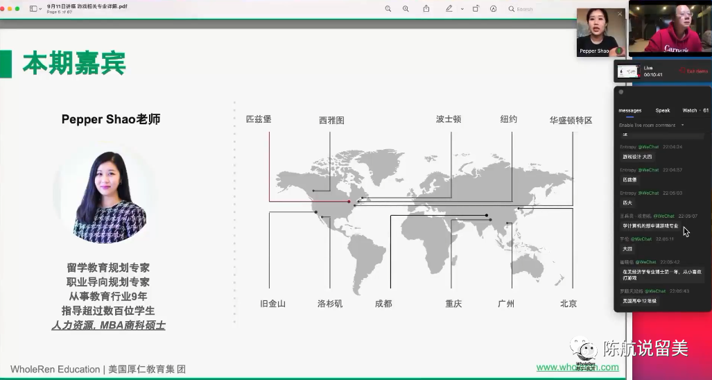 感谢各位家长同学观看9月11日的《2000亿美元游戏行业大起底》讲座,特邀资深留学规划导师Pepper老师,为大家解读游戏、电竞、动漫、人机互动、艺术管理等大热专业的就业趋势与申请诀窍!
