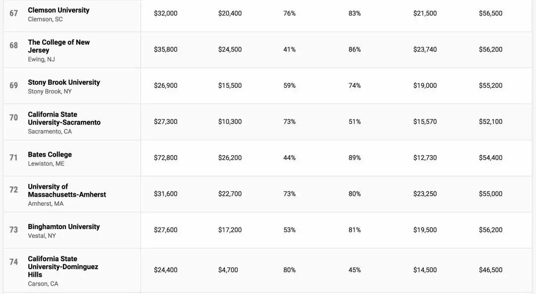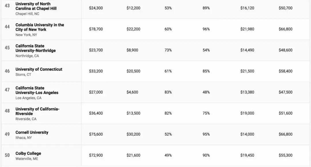 接下来我们就来看看《Money》最终统计出的2021年性价比最高的美国大学排名: