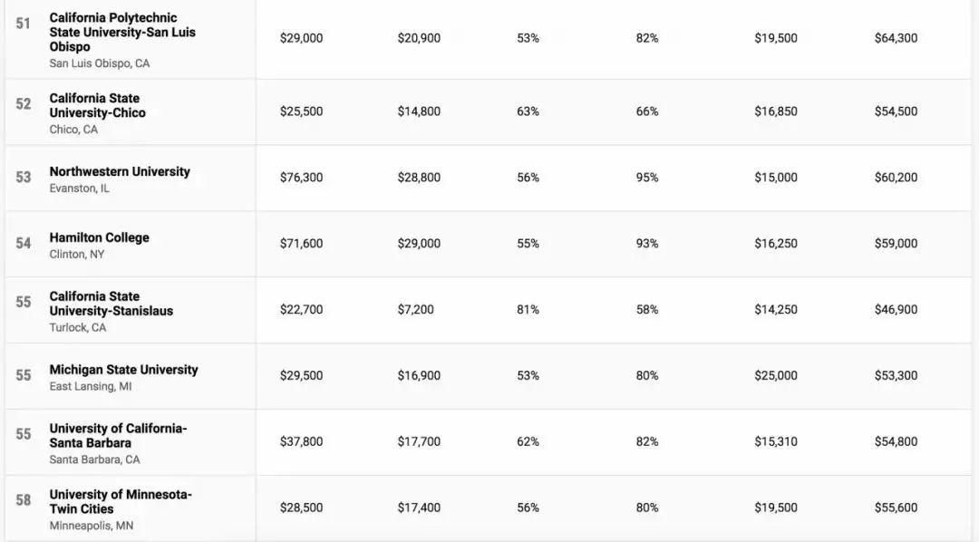 从评价标准看的出来,《Money》这份排名对于学校的评估考虑的方面十分全面,既关注学校的教育质量,也关注学生实际的投资花费、社会经济情况及毕业后的发展和收入。相比其他排名《Money》更看重学校的价值。