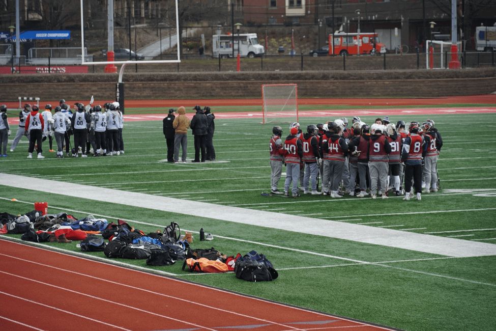 操场上有两个队要打曲棍球比赛,这是马上就开始了。