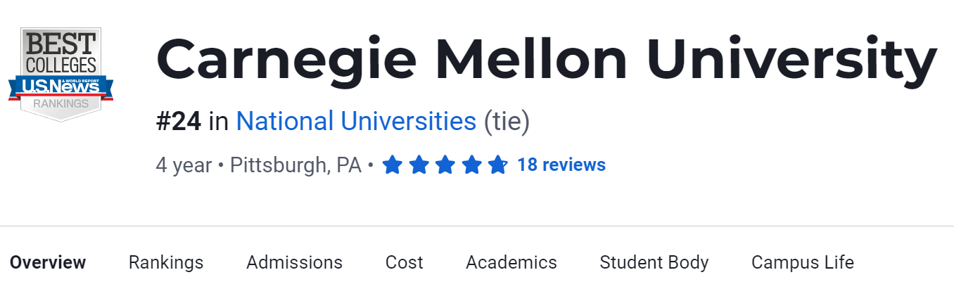 2024年USNews 全美大学综合排名中位于第24名。