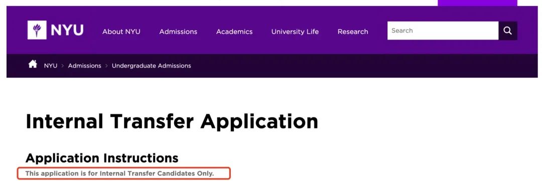 每个NYU的学生,可以登录自己的学生账户,查看到Internal Transfer Application的专属页面。