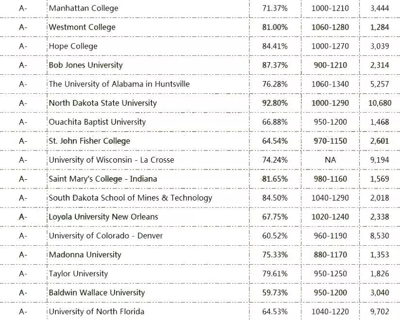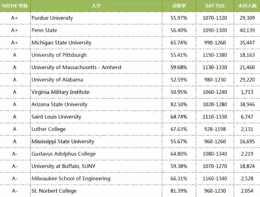 Niche整理出50所滚动录取项目的美国大学,有不少是USnews排名前100的: