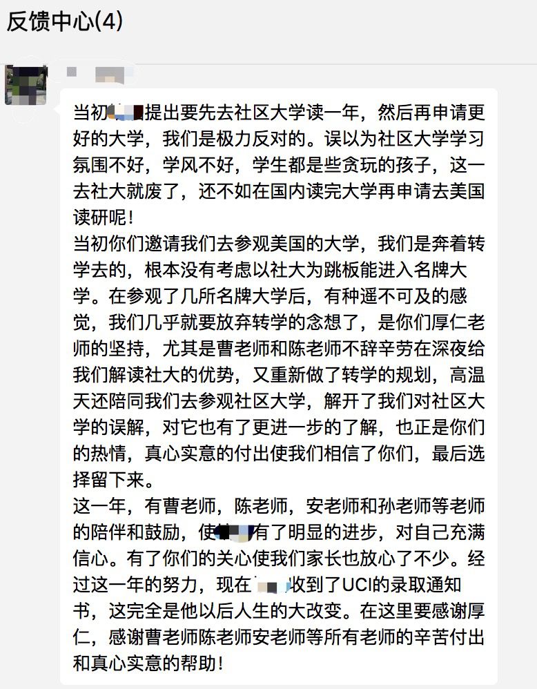 二,Max回国,好好规划,争取研究生申请一个好的学校。在这个过程中,从经验的角度,我是更倾向让Max留下的,因为真的看到了孩子对这份机会的渴望和认真。同时了解到Max在目前中国学校的学习状态以及真正能够学到的知识有限。而与此同时,父母的担心又确实是可以理解的。最终我们说服了Max爸爸,先去看一下学校环境,带他们真实的感受美国社区大学和大部分家长理解的是存在很大偏差的。