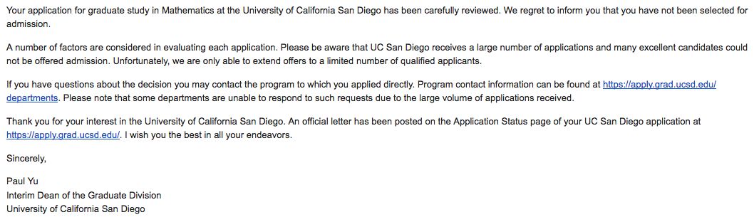 其实大部分学校的拒信,不会个性化的给出原因,还是比较general的。比如UCB: