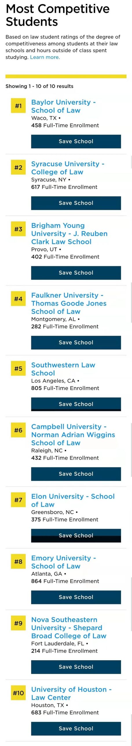 近日,《普林斯顿评论》也发布了2022年最佳法学院排名。根据对美国168所法学院的1.5万名学生和这些学校的管理人员的调查数据,对这些名单进行了统计,并在14个排名类别中评选出了前10名的法学院。