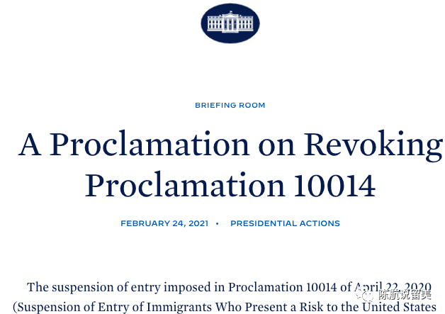 24日,总统拜登在白宫网站上,发布重要移民行政命令。(https://www.whitehouse.gov/briefing-room/presidential-actions/2021/02/24/a-proclamation-on-revoking-proclamation-10014/ )