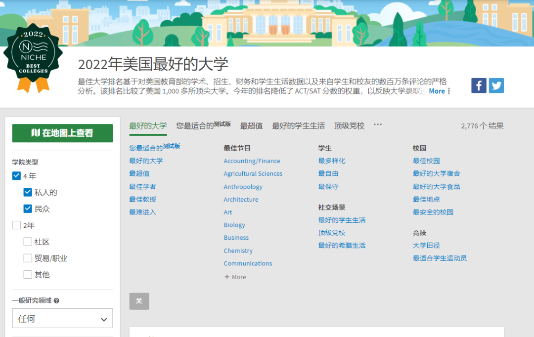 而近日,Niche公布了2022年全美最佳大学榜单。根据官网显示,Niche美国最佳大学排名依靠于最值得信赖的来源(例如美国教育部)来进行数据计算。