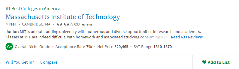 并且与其他榜单不同的是,Niche给出的最佳大学排行榜,不仅综合了大U和文理学院,而且排名的依据也不局限于学术及学校资源。还作为一个由在校学生与家长提供信息的平台,Niche的排名更多地考虑了亲身经历者所反馈的体验。