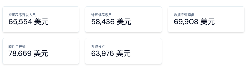 以下是截止至2015年,由payscale.com统计的薪资,现在很多也都能到10w美金年薪,在众多专业中都是非常可观的。