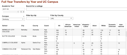 前面说过,加大伯克利国际学生新生录取率是8.7%,那么它的国际转学生录取又如何呢?下面是加大系统官方数据部分截图:
