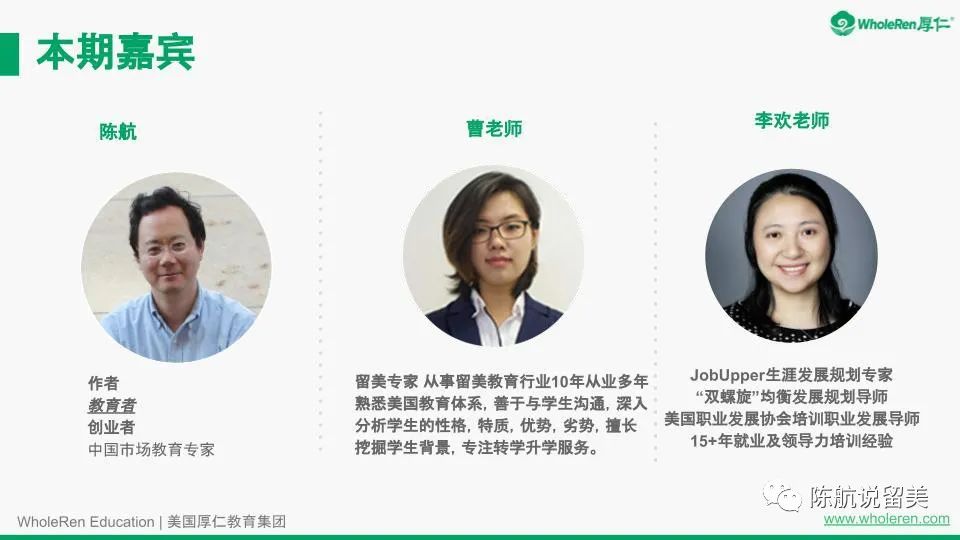 感谢各位家长同学观看12月26日的《雪城大学本升研及实习就业》专场讲座,本次讲座特邀留美专家–曹青老师和JobUpper生涯发展规划专家–李欢老师,为大家分享成功经验。