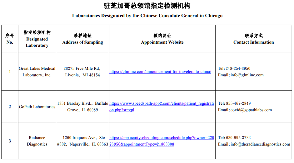 (芝加哥因检测点和起飞城市不一样,可特例)