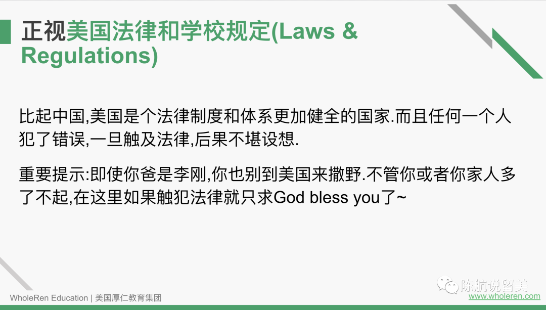 如何适应美国的学业和生活,做到两者不打架,在美国学习和生活的安全注意事项,美国人的一些习俗,如何避免踩坑。