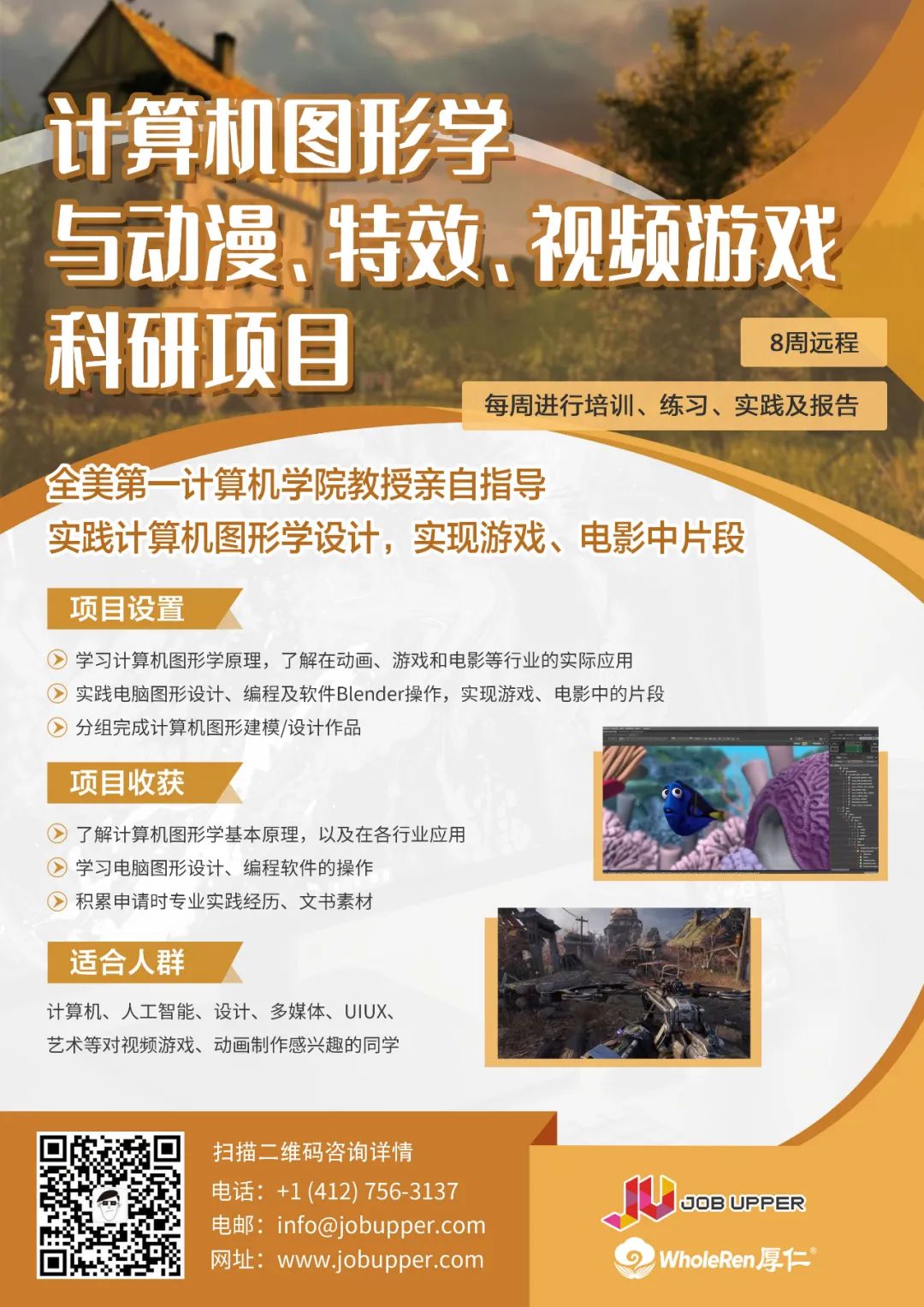 如果你是计算机、人工智能、设计、多媒体、UIUX、艺术等专业的同学,或者对视频游戏、动画制作感兴趣,那么务必要抓住难得的机会,师从全美第一计算机学院教授,开启第一个计算机图形作品,为未来的专业申请,进入动漫、特效和视频游戏产业,实现0的突破!