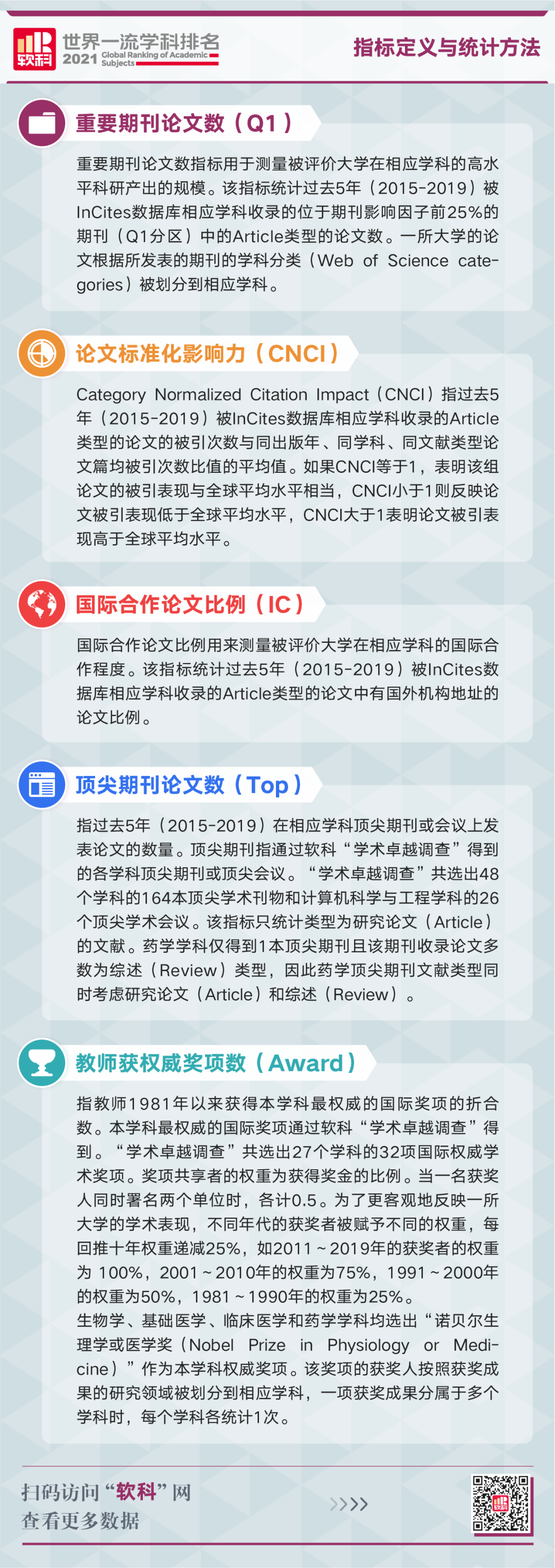 从某种意义上来说,这是一份较为纯粹的排名。全部采用国际可比的客观学术指标,包括学科国际权威奖项、学科顶尖论文、学科论文质量、学科国际合作等。