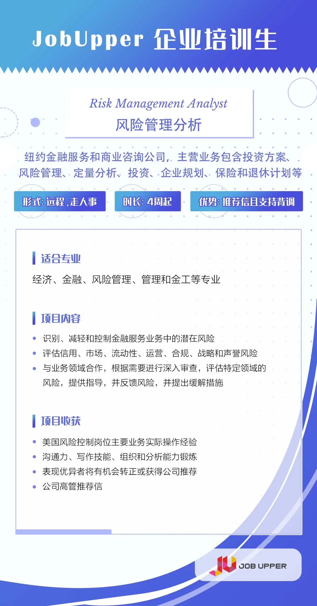每年8月-11月秋招高峰,高盛、JP Morgan、麦肯锡、四大等超过60家名企都有大量职位放出,是一年中招聘时间最集中、招聘名额最多的时间,同学们可以登录目标公司官网,或者Moster、Indeed和SimplyHired的网站检索相关职位讯息,而已经错过网申的同学也可以试试内部referral,或者寻找其他实习机会,为明年2-3月的春招做准备。
