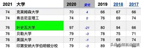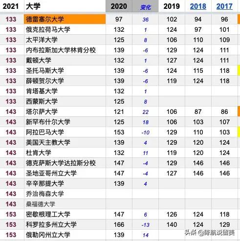 第三栏是2020排名。第四栏是变化,负数说明排名提高,是好事。