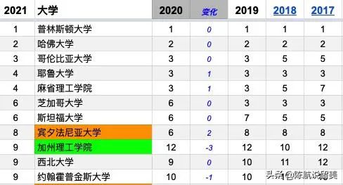 加州理工,从去年的12名,挤进并列第9。至此,六大神校,“哈耶普斯麻加”,都进了前10名,功德圆满。