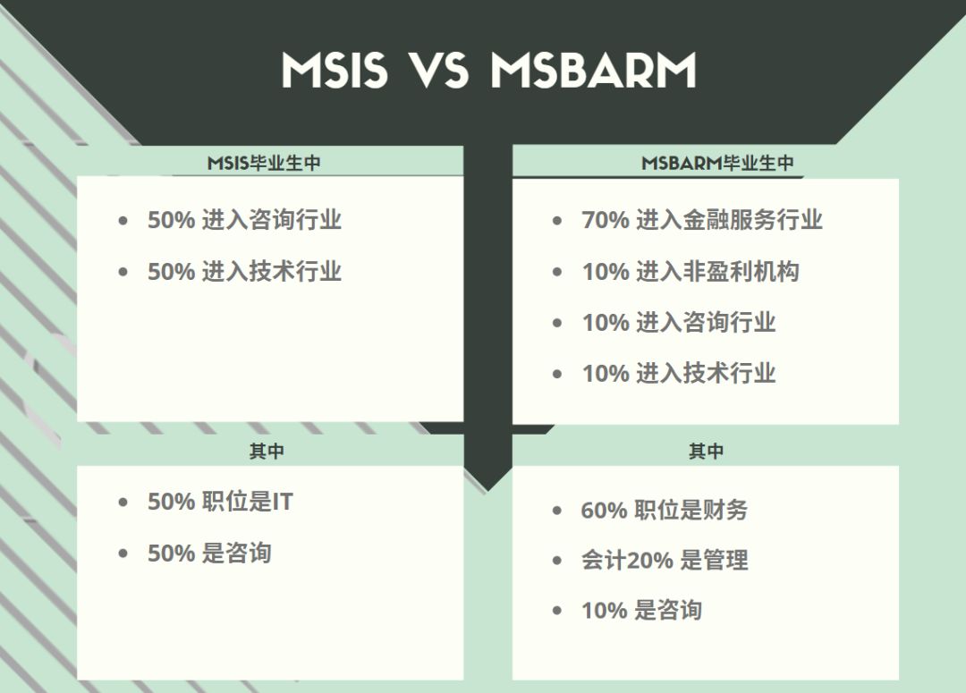如果是想进入金融行业的学生,建议选择MSBARM专业,不论从课程设置还是未来就业方向来看都更加偏商务。