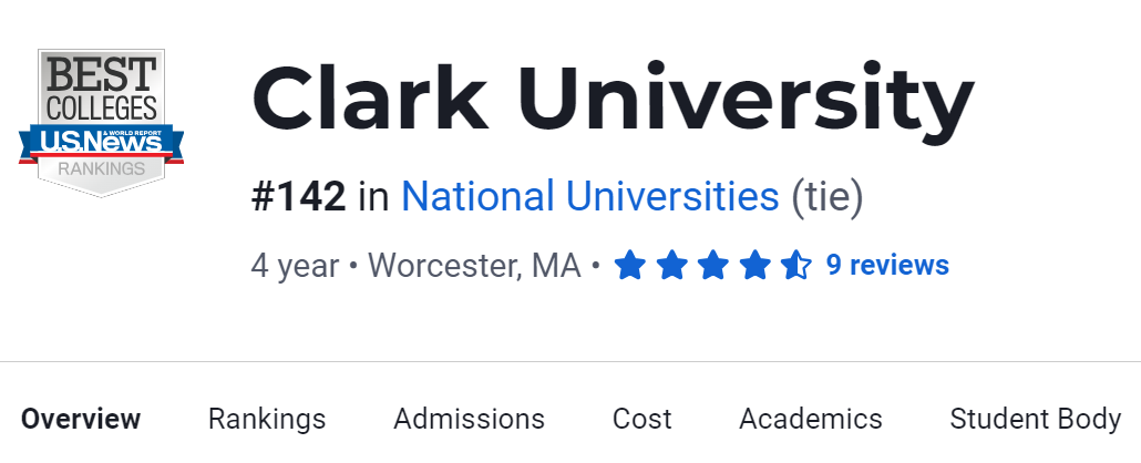 在2024年USNews美国大学排名中,克拉克大学排名第142。