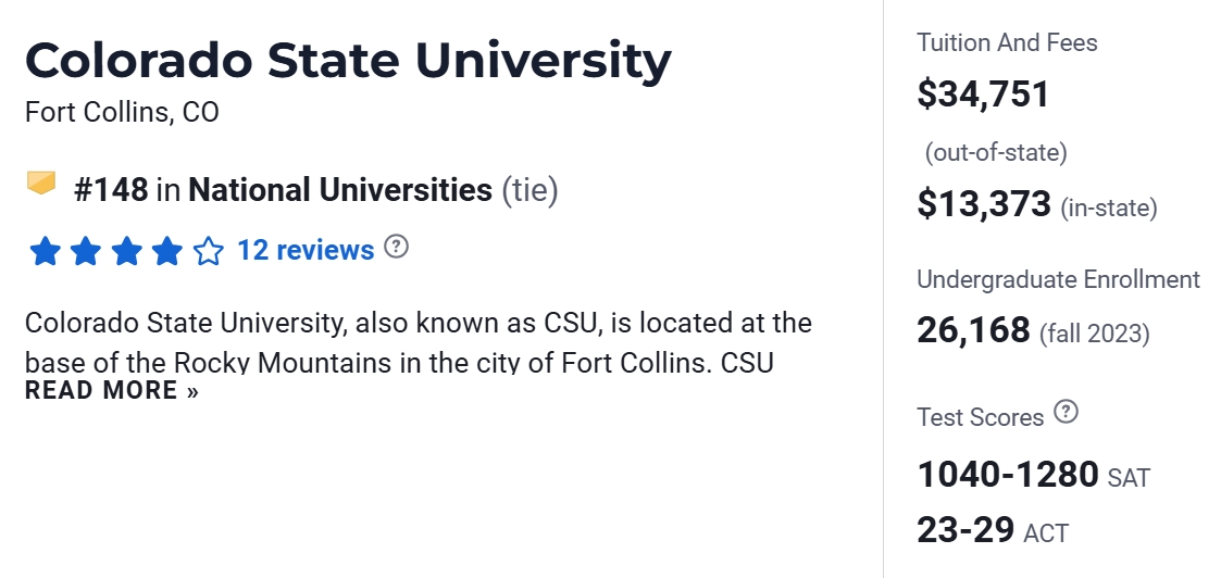 在2025年USNews美国大学排名中,CSU排名第148。