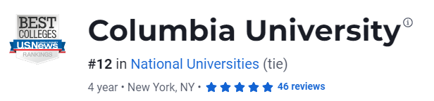 2024年U.S.News排名,哥伦比亚大学位列全美大学第12。
