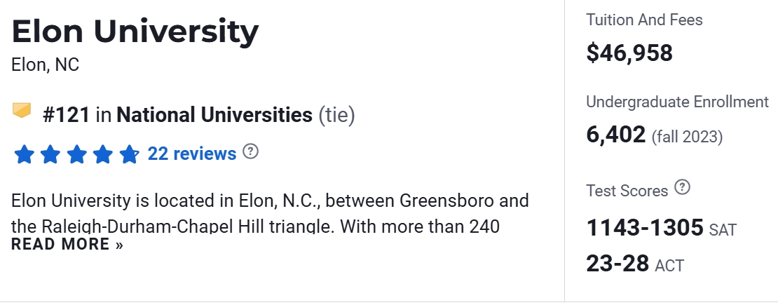在2025 年USNews美国大学排名中,Elon University排名第121。