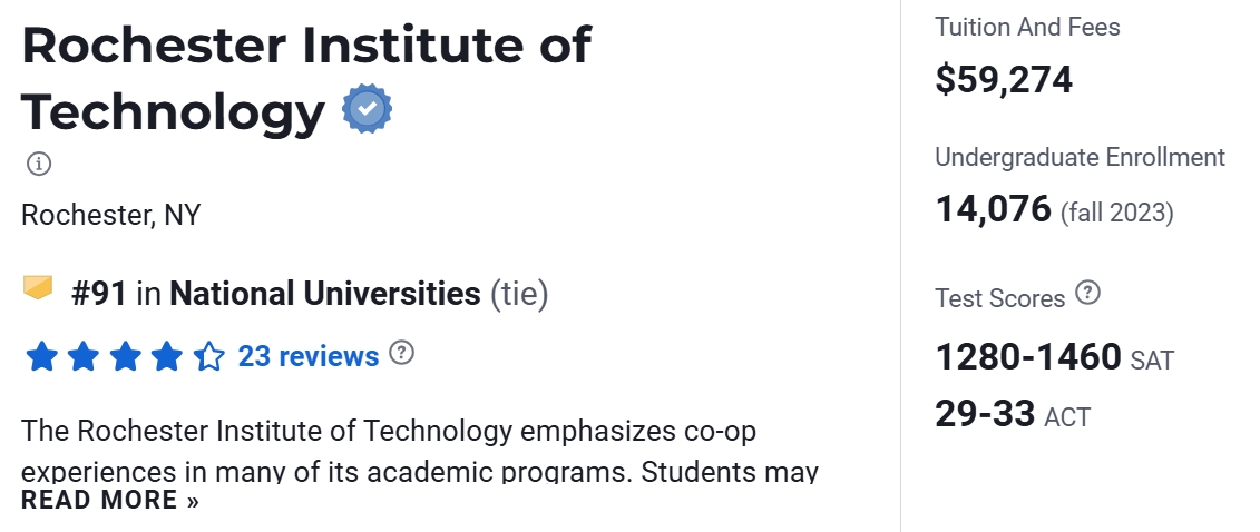 在2025年USNews美国大学排名中,RIT排名第91位。
