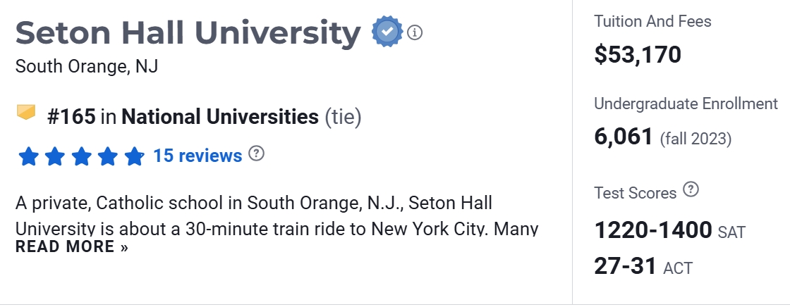 在2025 年USNews美国大学排名中,SHU位于第165名。