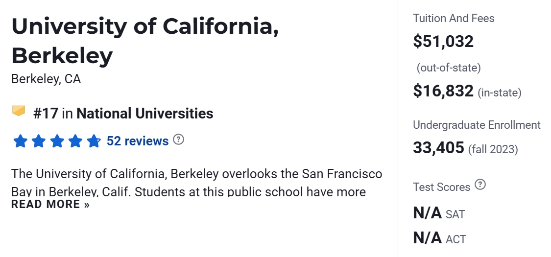 2025 年US NEWS全美大学综合排名中,UCB 位于第17名。