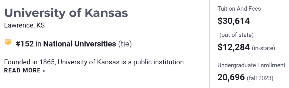 堪萨斯大学 (University of Kansas),简称KU,坐落在美国堪萨斯州的劳伦斯市,创建于1865年,拥有悠久的历史和学校传统。堪萨斯大学现已成为美国著名的公立研究型大学之一,也是美国大学协会(AAU)的成员校之一。