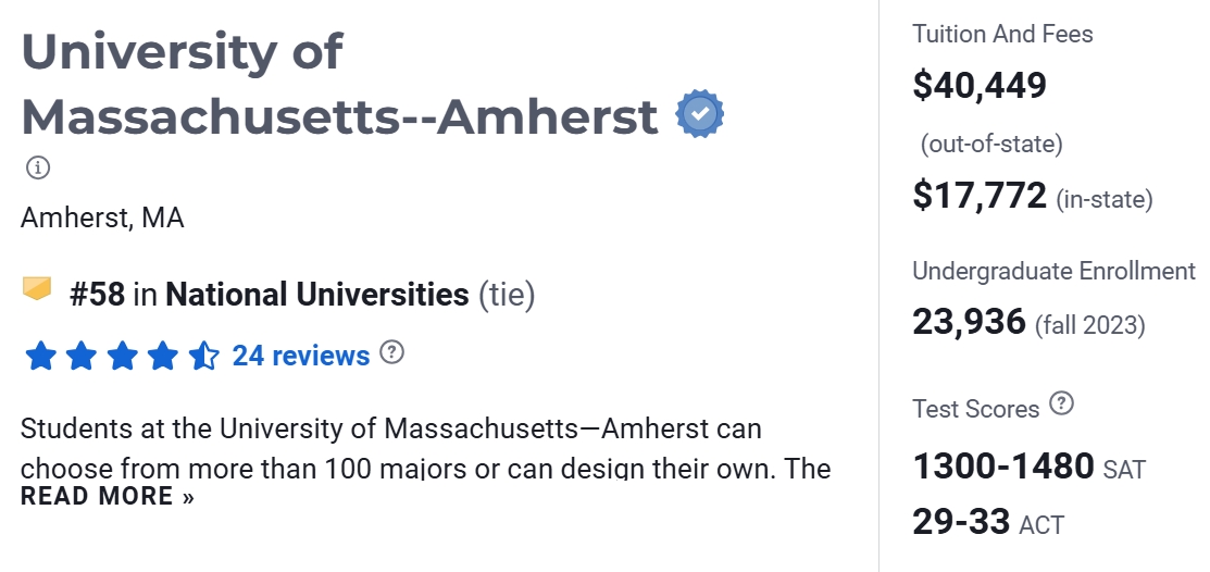 在2025年USNews美国大学排名中,马萨诸塞大学排名第58。
