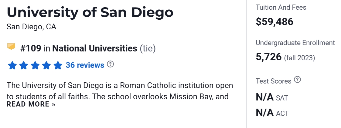 在2025年USNews美国大学排名,圣地亚哥大学排名第109。