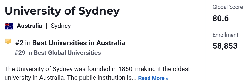 2025年,悉尼大学位列U.S. News全澳第2、世界第29位。