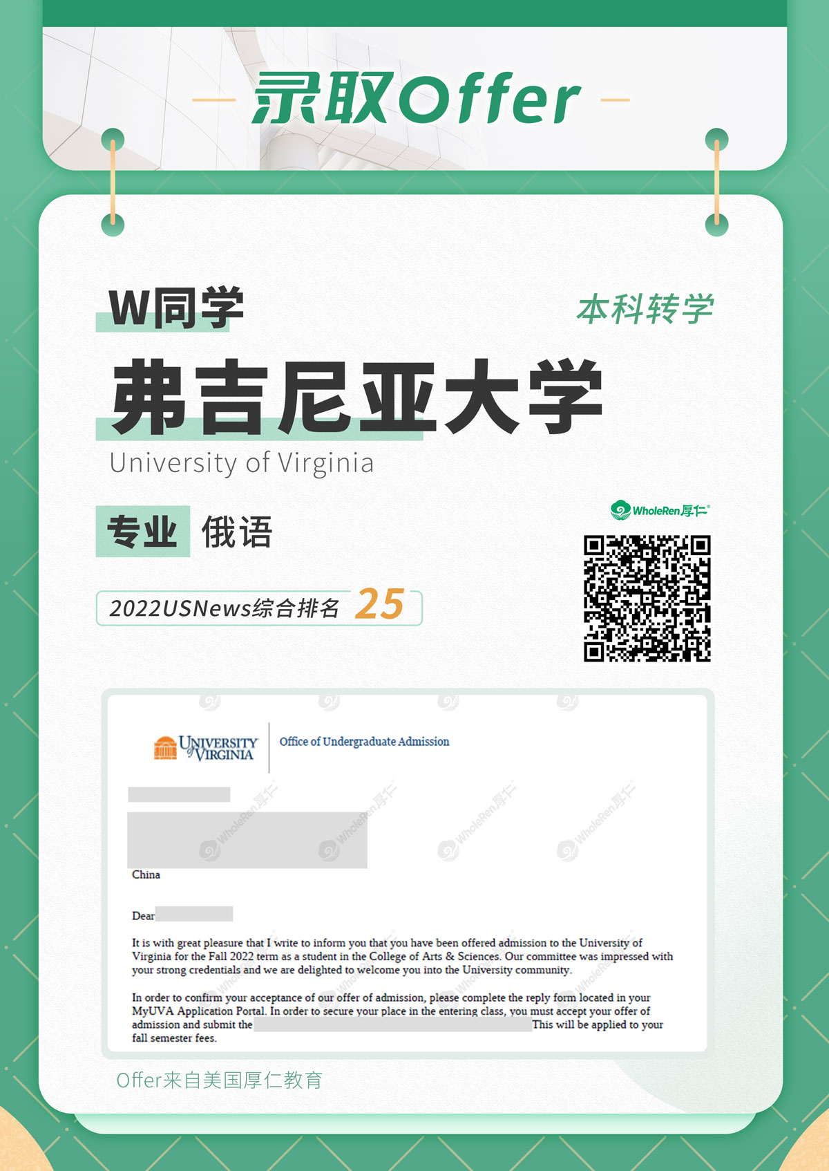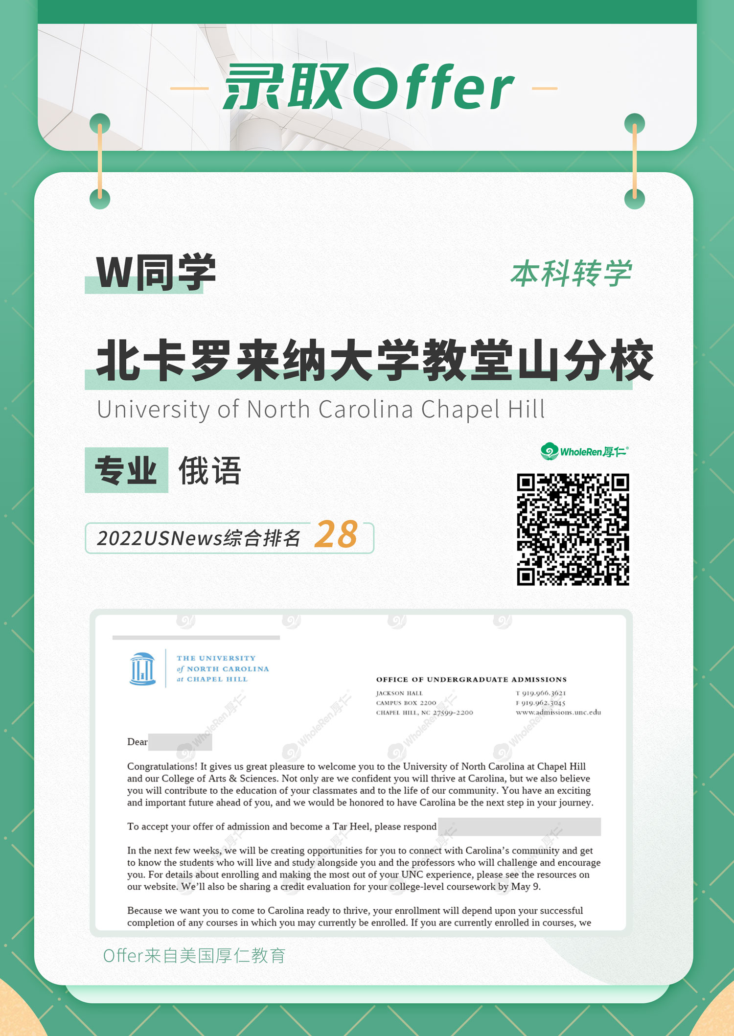 选校初期,厚仁老师对W同学的背景和申请梯队做了全面的评估和分析。W同学拥有4.0 GPA,SAT 1520+,TOEFL 110+的优秀标化成绩。这样的优势,申请哪个顶级名校无疑都是十分亮眼的。与之相对,我们也看到了W同学的薄弱环节:实习科研经历不足。W同学的科研经历大多停留在高中时期,本科期间较少。申请老师与W同学多次沟通,积极鼓励学生与教授多多交流,为自己争取到本校教授的合作项目。同时,还通过厚仁的子公司JobUpper为学生找到其他名校的科研项目。在厚仁老师不断的鼓励和指导下,同学顺利完成了多个科研项目,并且拿到了教授的推荐信。这也为申请文书提供了有力素材。我们安排了英语母语的藤校导师,为W学生提供了文书指导。重点帮助W学生梳理面试思路,调整语言的表达,突出个人的特点。